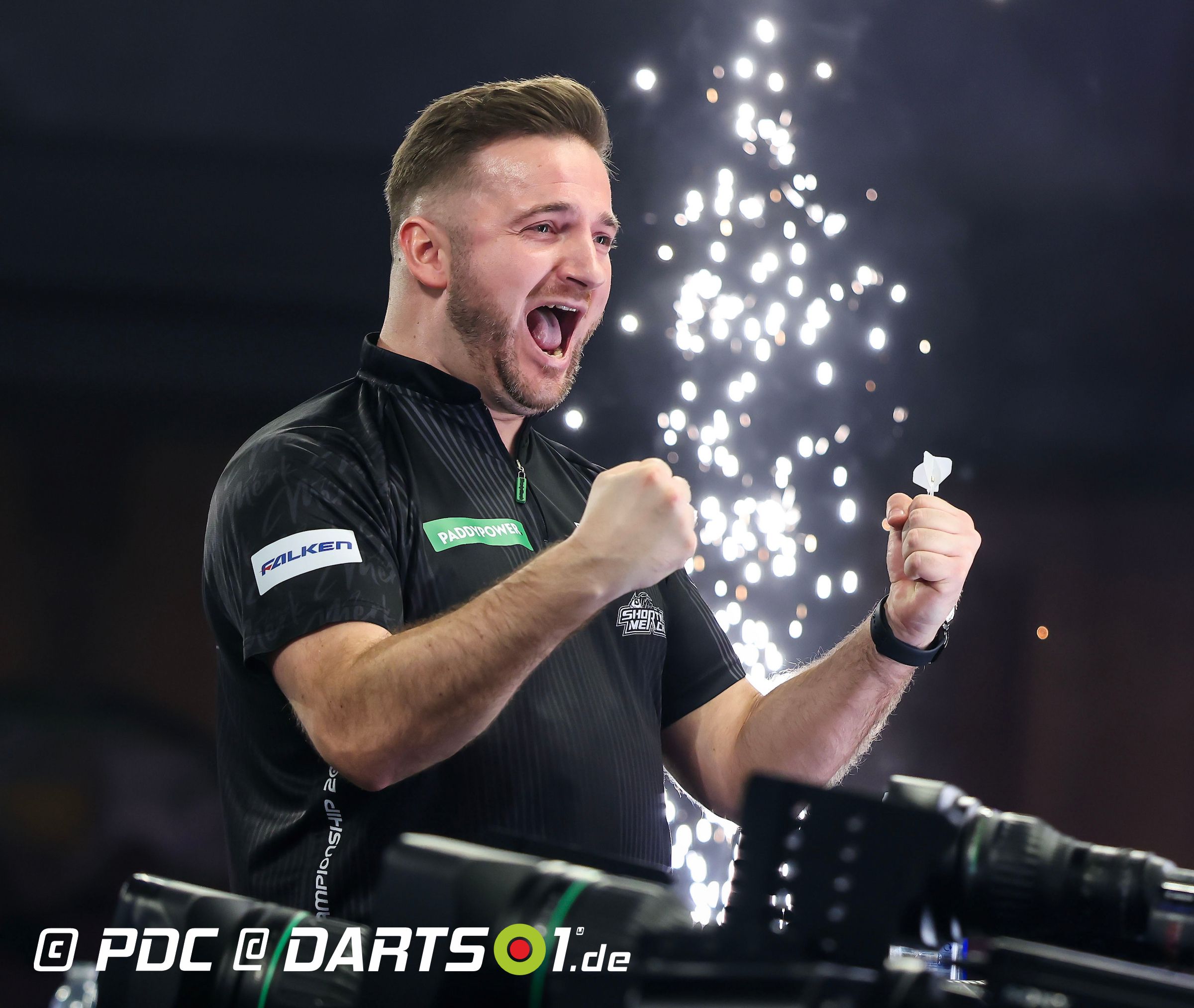 Huybrechts stemmte sich zwar im dritten Satz mit einem 113er High-Finish und in etwa gleicher Doppelquote (38 %) gegen das Aus, konnte aber den Rhythmus seines Gegners nie dauerhaft brechen. Merk blieb stabil, machte im vierten Satz schnell alles klar und feierte seinen ersten WM-Sieg – ein beeindruckender Einstand für den Super-League-Champion.