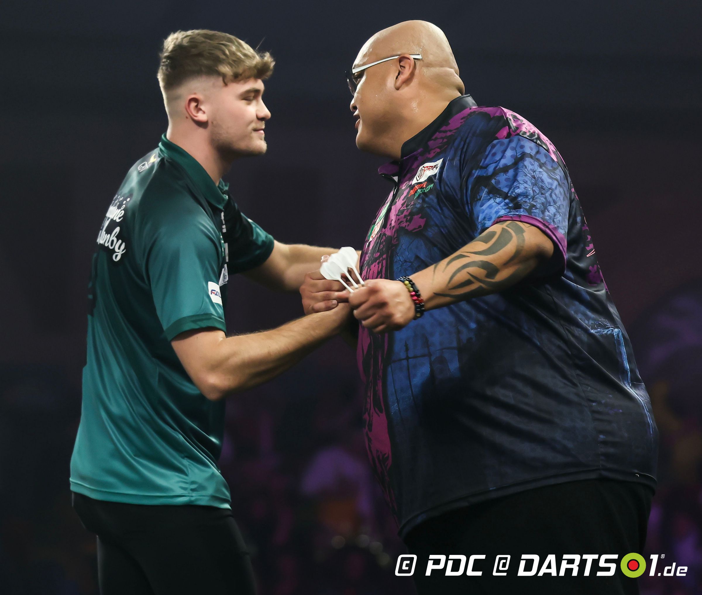 Razma behielt auch im vierten Satz die Nerven, als er einen zwischenzeitlichen Rückstand drehte und mit starken Checkouts – darunter ein 121er-Finish – den Sack zumachte. Damit steht „Razmatazz“ zum dritten Mal in Folge in Runde drei.