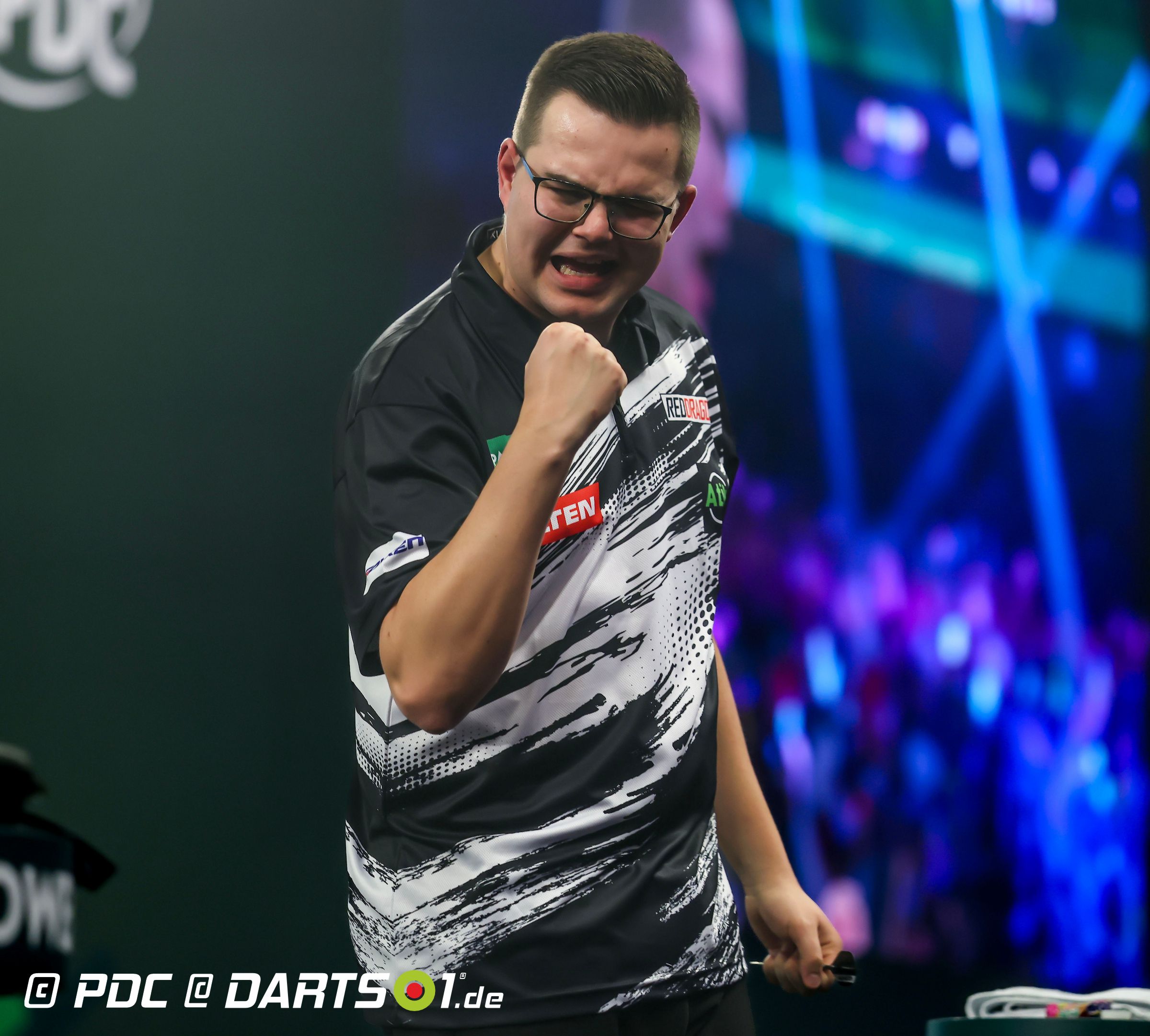 „Ich wollte ohne Drama gewinnen, und das ist mir gelungen“, so Humphries, der mit 50 Prozent Doppelquote überzeugte. In Runde drei kommt es nun zum Aufeinandertreffen mit Gabriel Clemens.