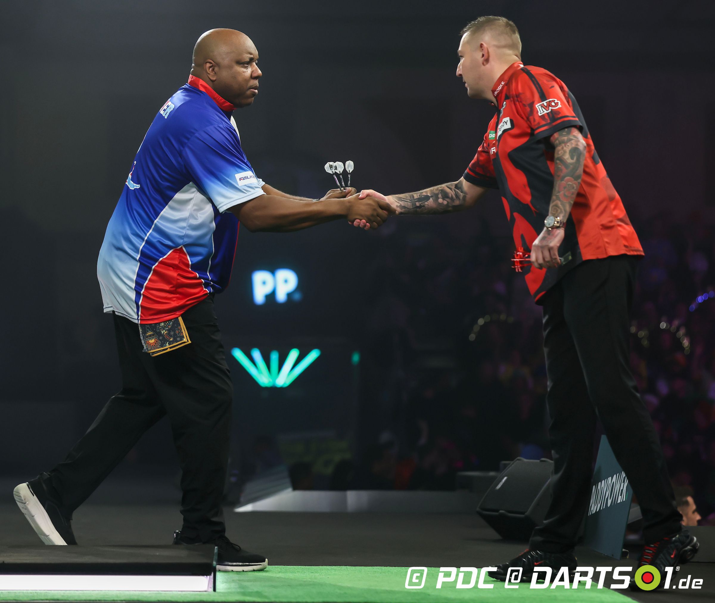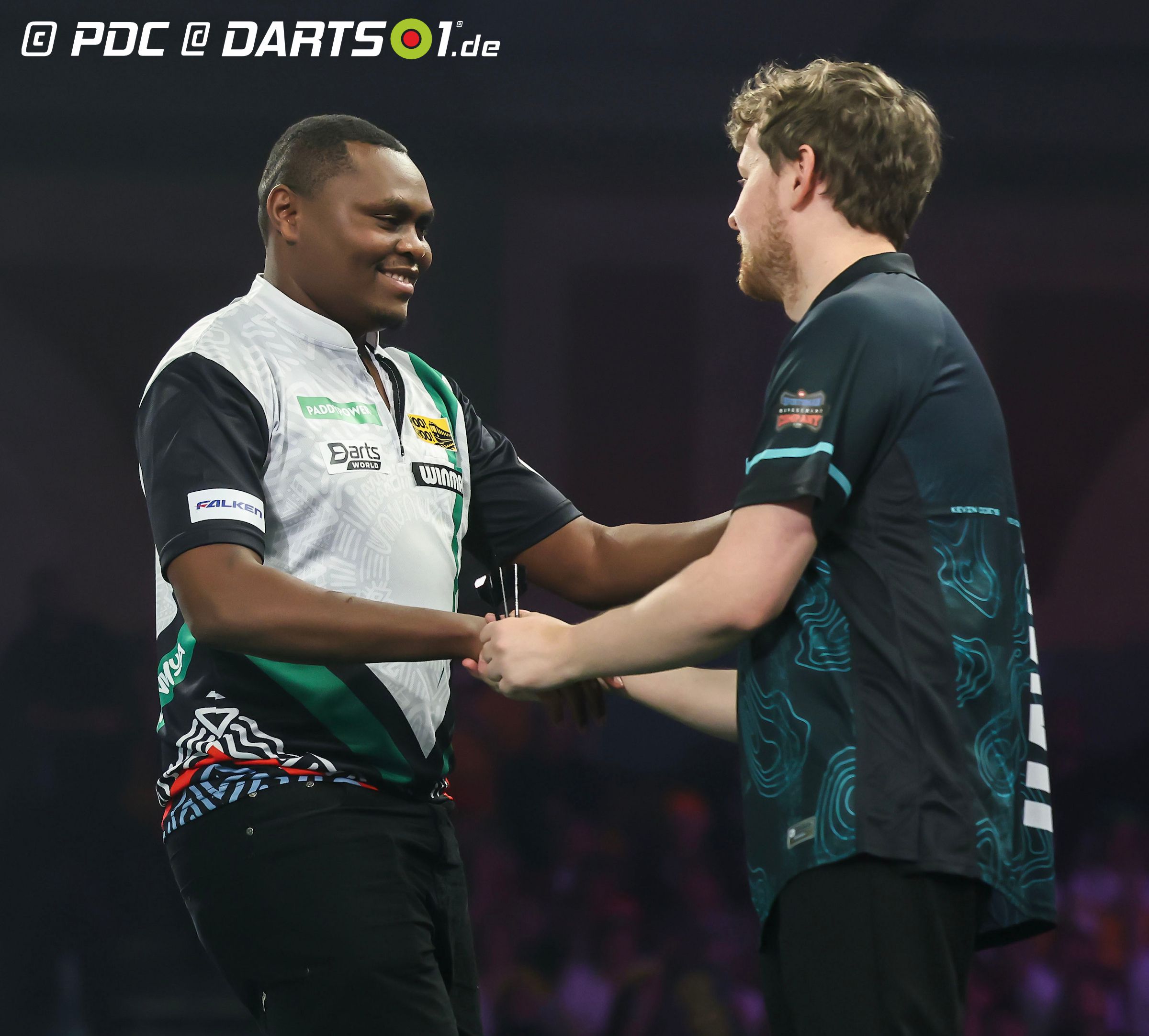 Kevin Doets ließ im Anschluss nichts anbrennen und schickte Publikumsliebling David Munyua mit 3:0 nach Hause. Der Niederländer agierte ruhig und konzentriert, gewann jedes Set mit maximal einem abgegebenen Leg und setzte sich vor allem im Timing der entscheidenden Momente durch.