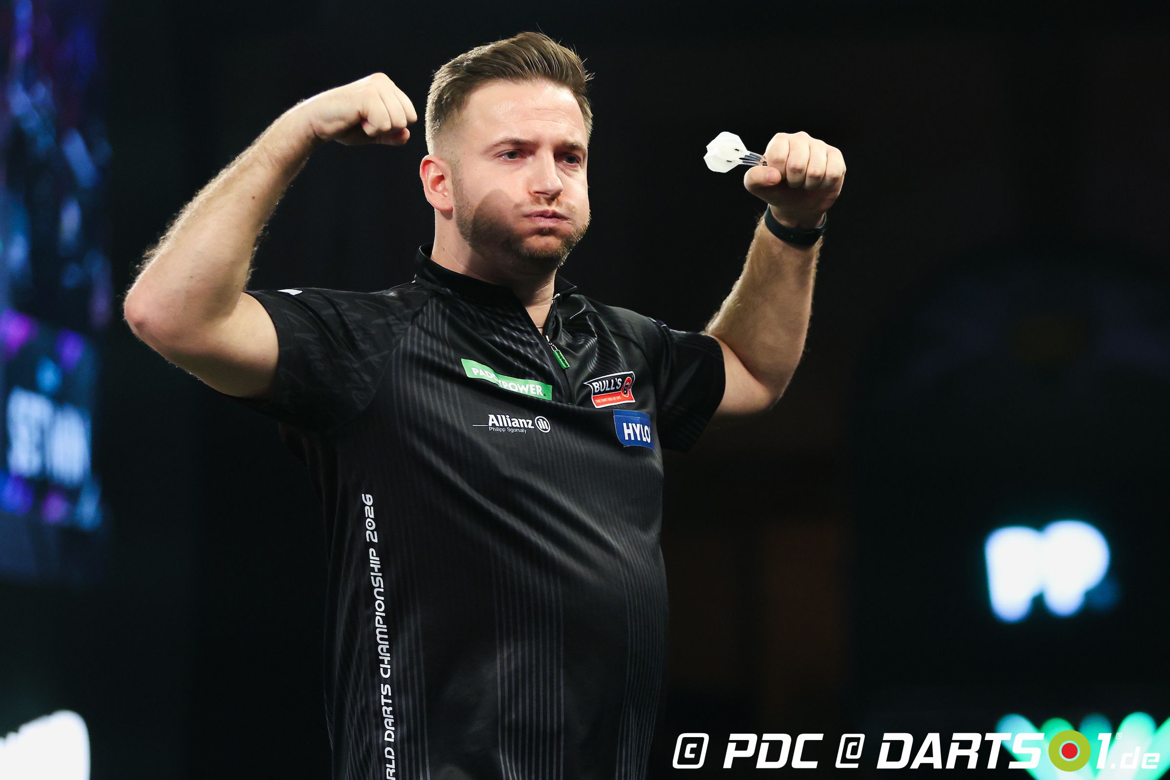 Dann kam der Moment, der diesen Spieltag prägen sollte. Arno Merk setzte seinen märchenhaften WM-Lauf fort und fertigte den zweimaligen Weltmeister Peter Wright mit 3:0 ab. Der Debütant spielte mutig, fokussiert und erstaunlich reif.