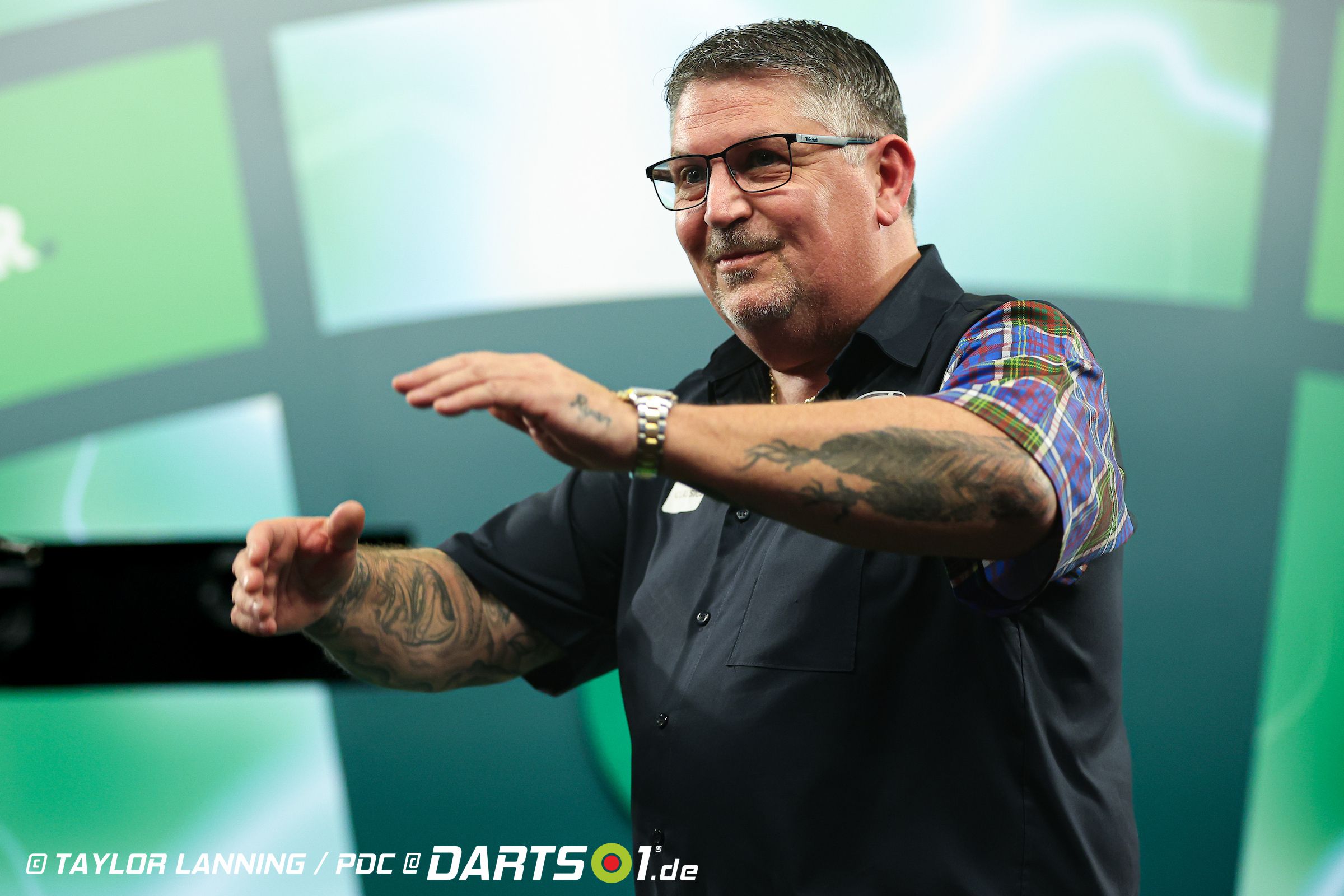 Das Highlight des Tages folgte im vorletzten Match: Gary Anderson gegen Michael van Gerwen. Die ersten beiden Sätze gingen jeweils über die volle Distanz – und beide Male hatte Anderson das bessere Ende für sich. Ein starkes Timing auf die Doppel brachte dem Schotten die 2:0-Führung.
