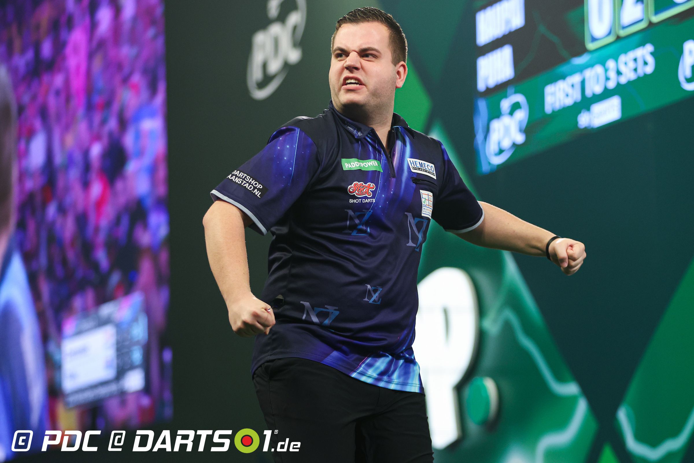 Zum Start in den Nachmittag ließ Niels Zonneveld keinerlei Zweifel aufkommen. Der Niederländer setzte sich klar mit 3:0 gegen Haupai Puha durch und überzeugte vor allem mit seiner Konstanz. Mit einem 92,68er-Average und einem starken 158er-Highfinish kontrollierte Zonneveld die Partie von Beginn an. Puha hielt im Scoring ordentlich dagegen, kam aber mit 29 Prozent auf die Doppel nicht entscheidend heran. Für Zonneveld bedeutete der Auftritt einen sicheren Einzug in Runde zwei.
