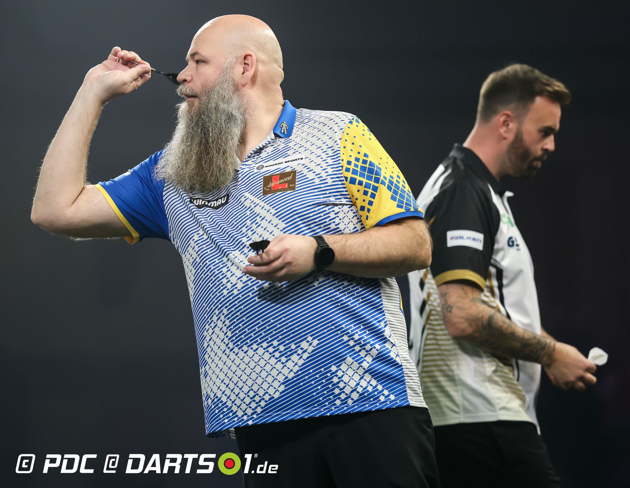 Im dritten Match des Nachmittags präsentierte sich Ryan Searle in überzeugender Form. Gegen Chris Landman dominierte der Engländer das Geschehen und gewann glatt mit 3:0. Searle spielte einen 93,29er-Average, war mit 47 Prozent auf die Doppel extrem effizient und unterstrich mit fünf 180ern seine Scoring-Stärke. Landman fand nie wirklich Zugriff auf die Partie.
