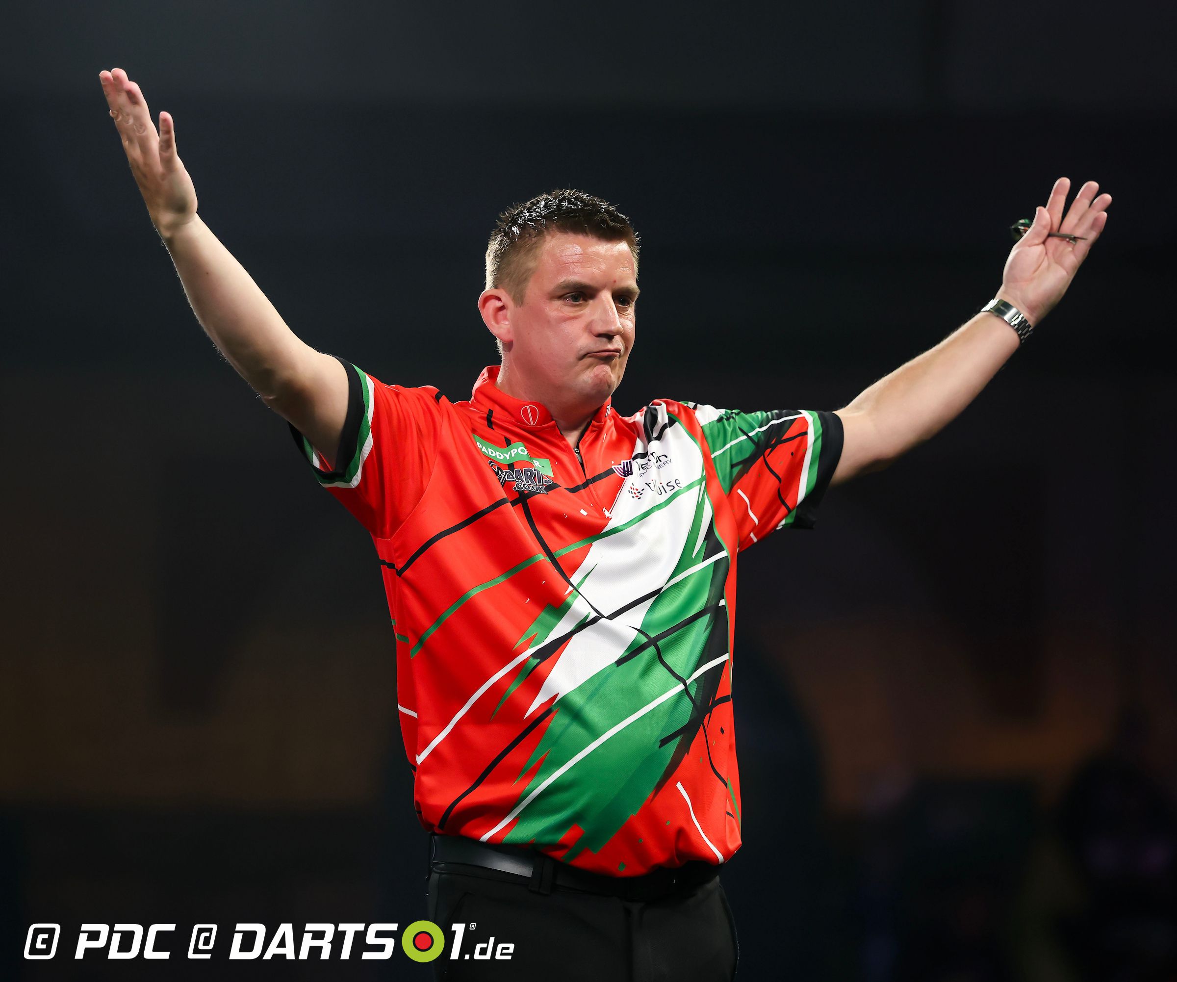 Eine umkämpfte Begegnung lieferten sich Luke Woodhouse und Boris Krcmar. Der Kroate startete besser und schnappte sich den ersten Satz mit einem sehenswerten 121er-Checkout. Woodhouse blieb jedoch ruhig, steigerte sich im Scoring und drehte das Match mit drei gewonnenen Sätzen in Folge zum 3:1-Erfolg.