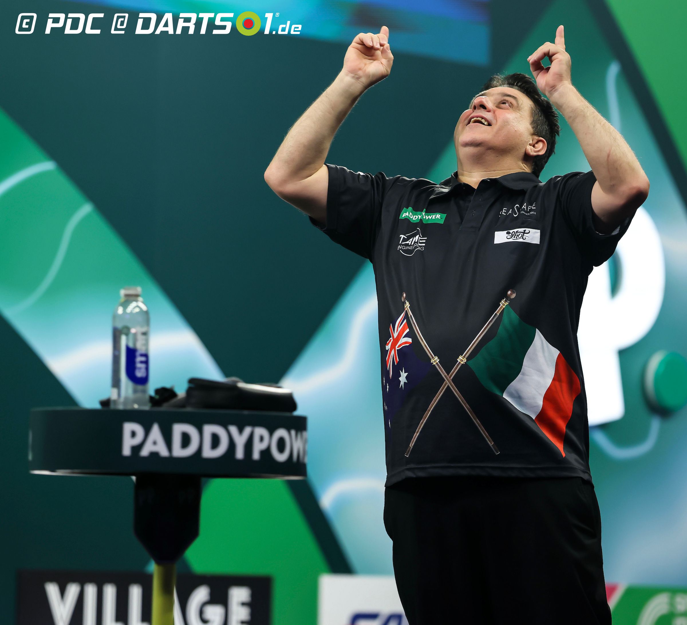 Zum Abschluss des Tages sorgte Joe Comito für eine der bisherigen Überraschungen des Turniers. Der Australier besiegte Niko Springer mit 3:1, obwohl der Deutsche im Average leicht vorne lag.
