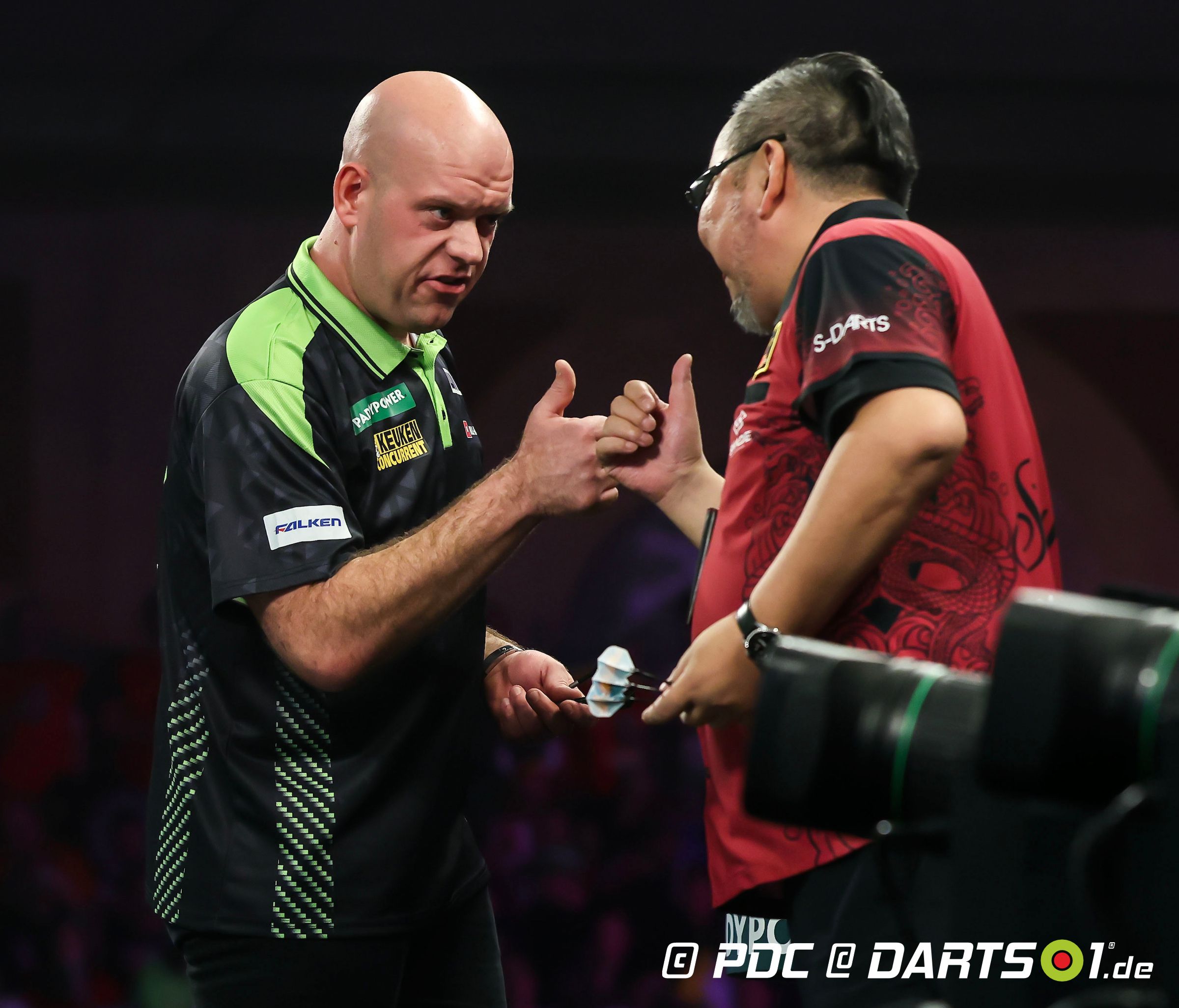 Michael van Gerwen musste gegen Mitsuhiko Tatsunami deutlich mehr investieren als erwartet. Der Japaner schnappte sich den ersten Satz und setzte den dreifachen Weltmeister auch danach massiv unter Druck.