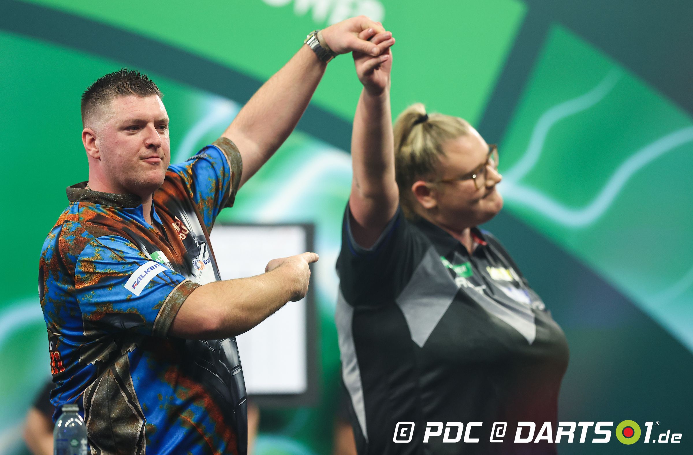 Eine der emotionalsten Begegnungen des Tages lieferten sich Daryl Gurney und Beau Greaves. Die Engländerin überzeugte mit sieben 180ern und einem 128er-Checkout, doch Gurney bewies im Decider seine ganze Routine. Ein wichtiges 144er-Finish brachte die entscheidende Wende zum 3:2-Erfolg.