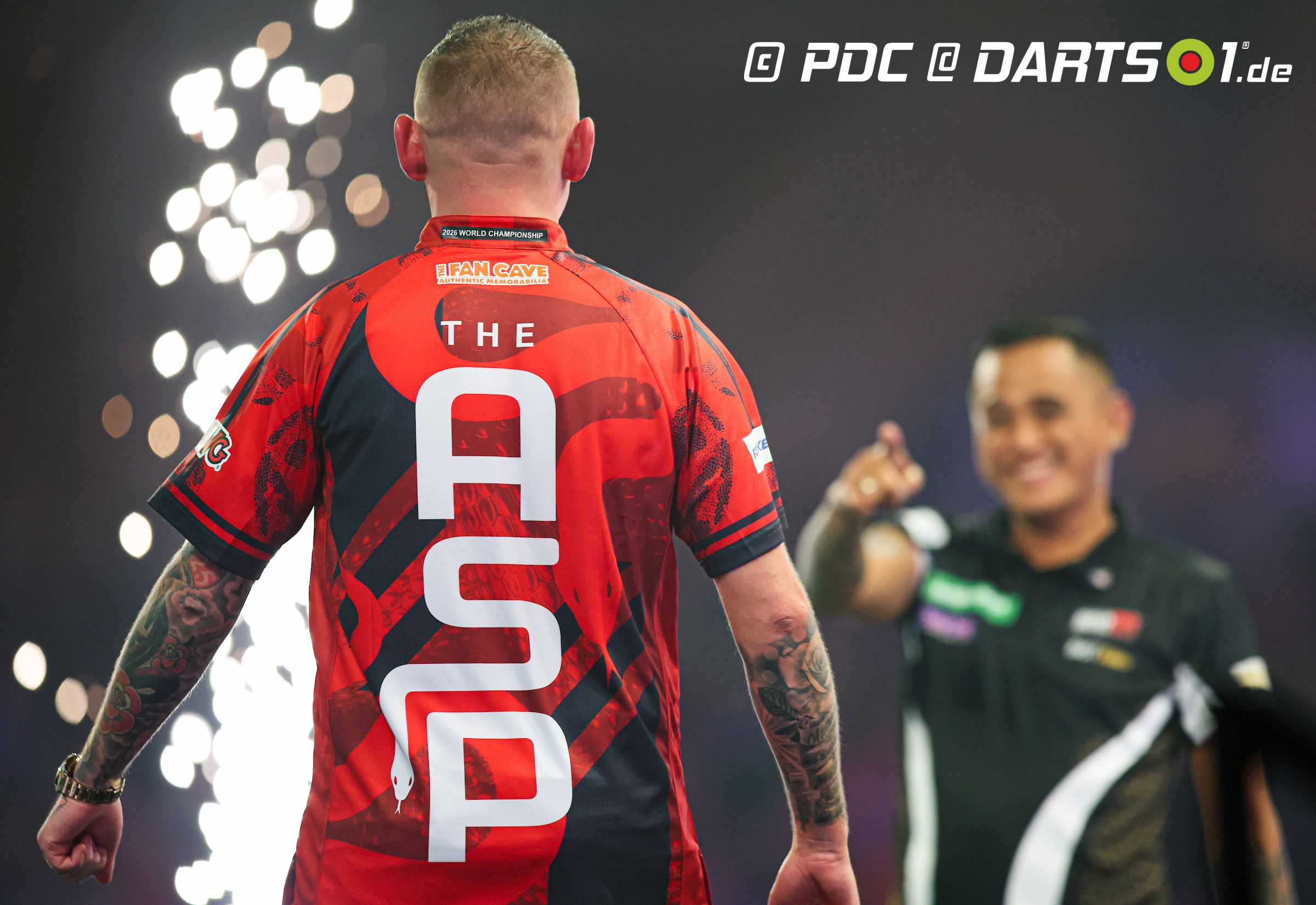 Nathan Aspinall musste gegen Lourence Ilagan früh einem Rückstand hinterherlaufen, kämpfte sich jedoch mit viel Emotion und Kampfgeist zurück. Zwei enge Satzentscheidungen und ein spektakuläres 170er-Finish im vierten Set sicherten dem Engländer den 3:1-Erfolg.