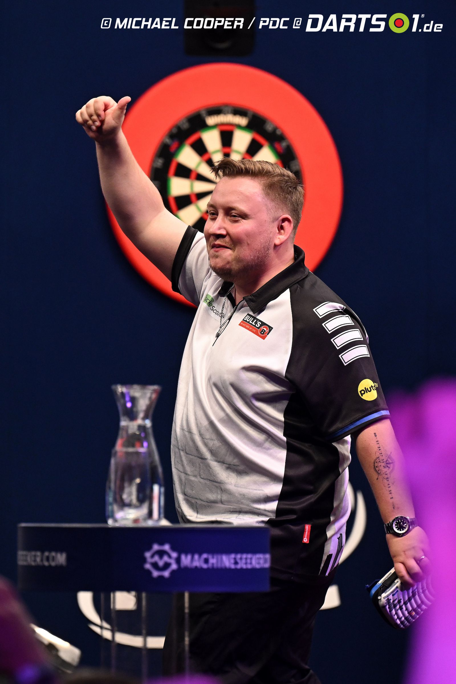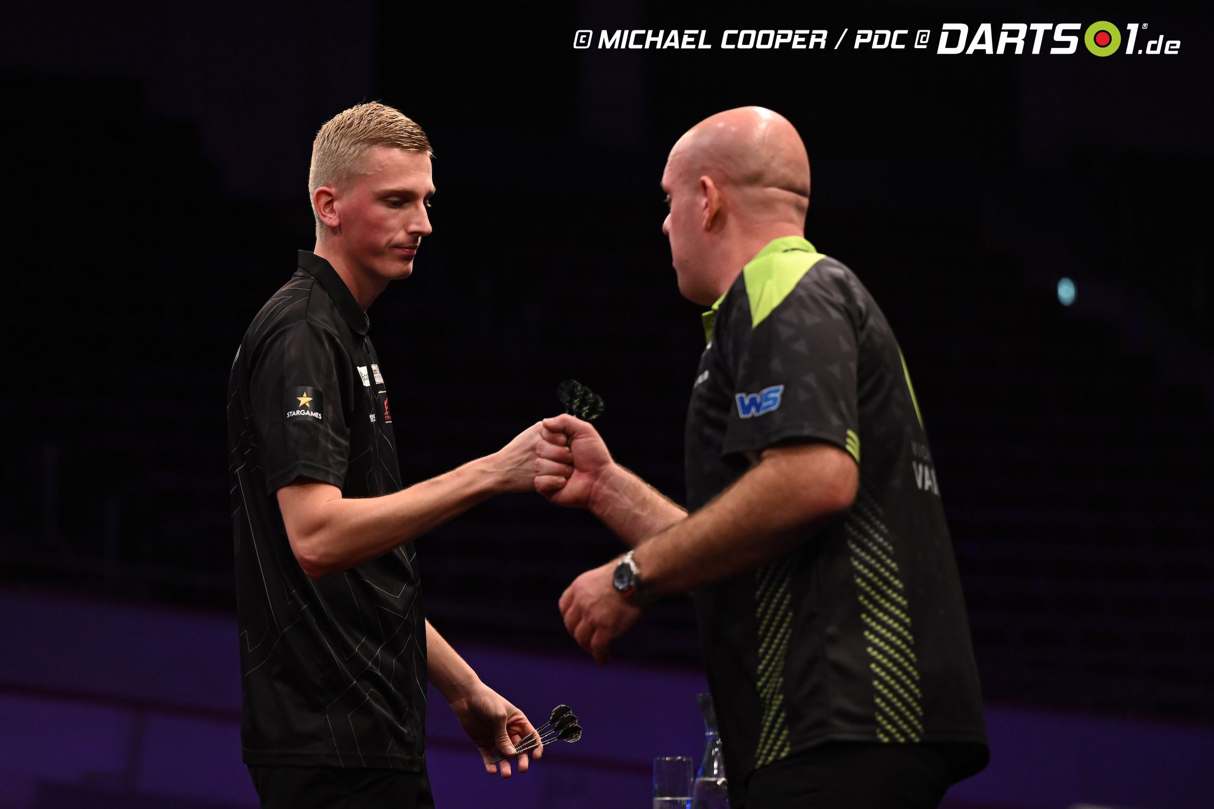 Mit einem Average von 97,83 Punkten zu Nijmans 96,57 blieb Van Gerwen erneut ungeschlagen gegen seinen Landsmann (5:0 im direkten Vergleich). „Es war ein starkes Match bis zum letzten Leg“, sagte Van Gerwen. „Wessel hat gut gespielt, aber am Ende entschieden die Nerven.“ In Runde zwei trifft Van Gerwen nun auf Chris Dobey.