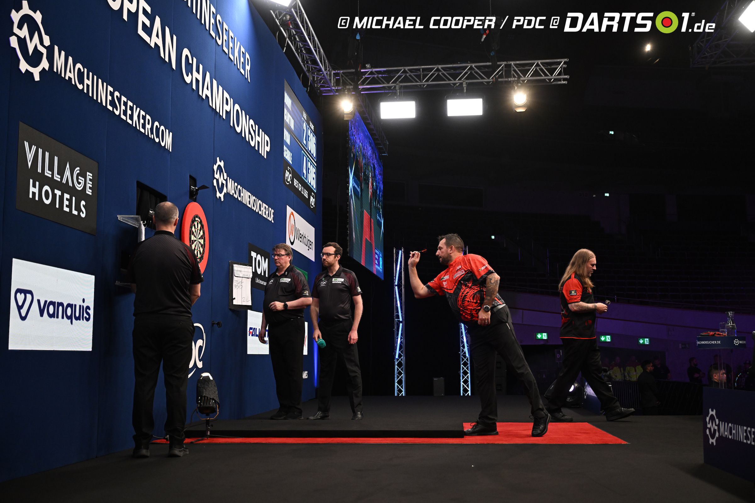 Im Eröffnungsspiel der Machineseeker European Championship 2025 in Dortmund setzte sich Ryan Joyce mit 6:3 gegen Luke Woodhouse durch. Das Duell begann ausgeglichen: Joyce holte das erste Leg mit einem 70er-Finish, Woodhouse glich prompt mit einem 64er-Checkout zum 1:1 aus. Joyce übernahm anschließend die Kontrolle. Er sicherte sich das dritte Leg mit einer 180 und einem sauberen Abschluss zum 2:1. Danach dominierte er die Partie, gewann drei Legs in Folge und baute den Vorsprung auf 5:1 aus. Besonders ein 112er-Checkout im vierten Leg setzte ein Ausrufezeichen. Woodhouse kämpfte sich mit zwei gewonnenen Legs und einem 84er-Finish noch einmal heran, doch „Relentless“ behielt die Nerven. Mit einem Average von knapp 98 Punkten und 60 Prozent Doppelquote machte er im neunten Leg den Sieg perfekt.