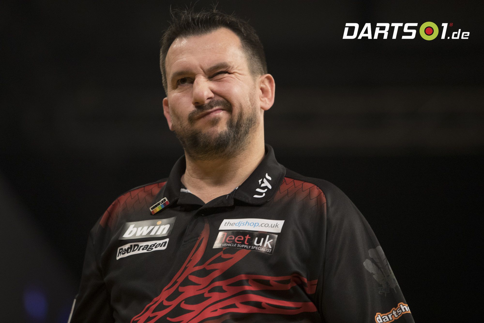 Mit einem sensationellen 10:6-Sieg über den James Wade hatte Michael Unterbuchner für einen der größten Erfolge seiner Karriere gesorgt und das Viertelfinale erreicht. In diesem traf der Sechste der BDO-Rangliste nun auf Gary Anderson, der seinerseits in der vorangegangenen Runde kurzen Prozess mit Wesley Harms machte. Unterbuchner startete klasse in die Partie, löschte im ersten Leg 78 Punkte mit zwei Darts und hatte frühestmöglich gebreakt. Bei eigenem Anwurf profitierte er dann von zwei Fehlern auf Doppel seines Gegners und stellte auf 2:0. Danach fing der Schotte allerdings an, sein Niveau deutlich anzuheben. Er spielte zwei 15-Darter nacheinander und hatte ausgeglichen. Mit einem 14-Darter setzte sich Anderson wenig später selbst in Front, ehe „T-Rex“ im sechsten Leg eine Möglichkeit auf Tops ausließ. Anderson bestrafte dies im Stile eines zweifachen Weltmeisters und brachte 152 Punkte zum Break auf Null. „The Flying Scotsman“ bestätigte das beschriebene Break zunächst, konnte anschließend auf der Doppel-7 ein weiteres Break erzielen und hatte mittlerweile sechs Legs in Folge für sich entschieden. Eines konnte er noch folgen lassen, ehe Unterbuchner ein starkes zehntes Leg spielte, es mit dem 15. Wurf beendete und mit einem 3:7-Rückstand in die zweite Pause ging.