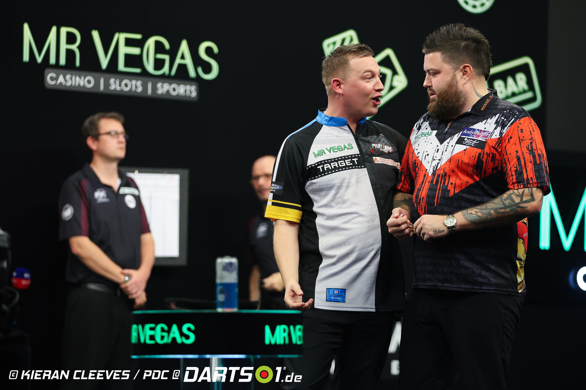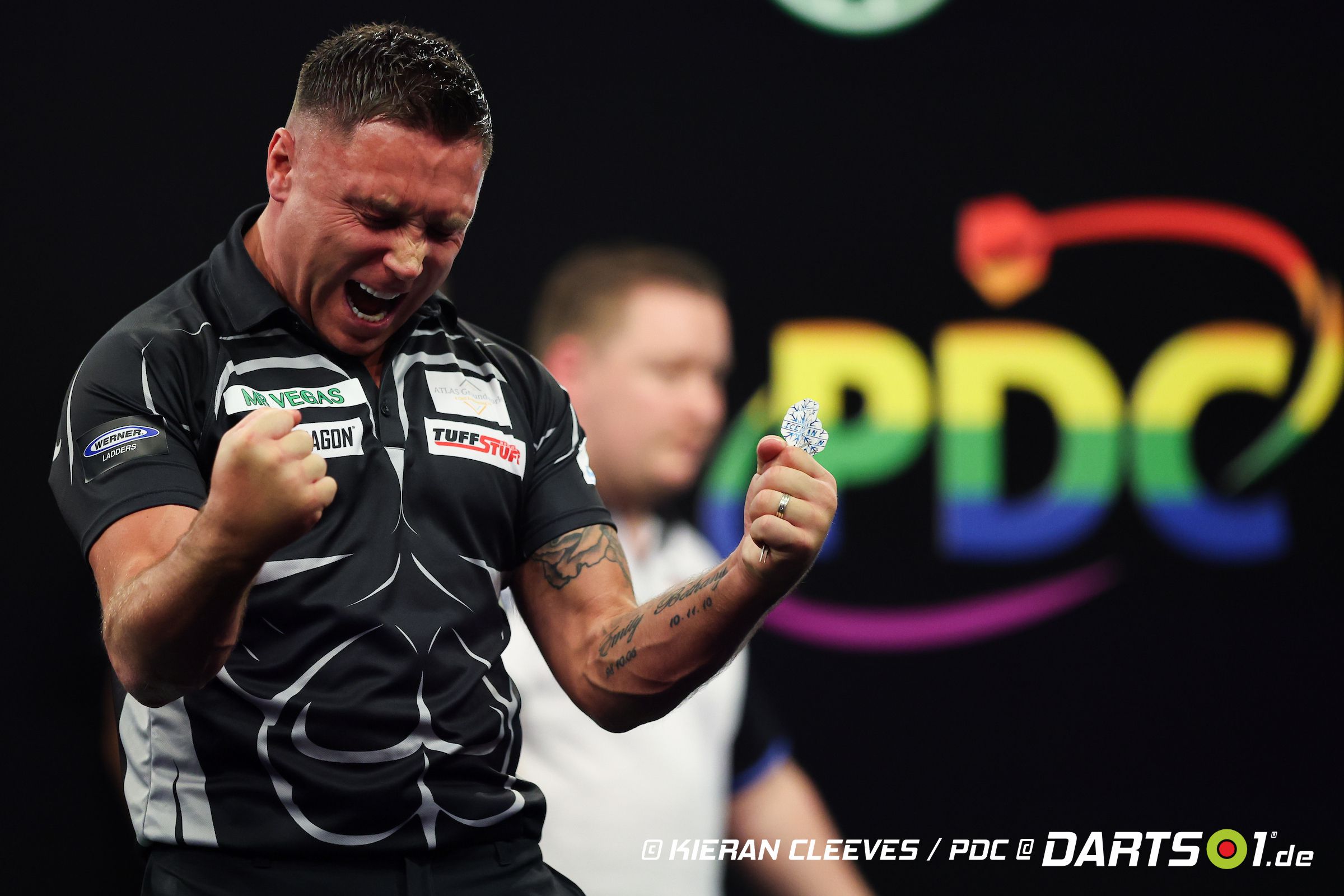 Im Anschluss setzte sich Gerwyn Price mit 10:6 gegen Martin Schindler durch. Der dreifache Grand-Slam-Champion erwischte den deutlich besseren Start, führte schnell mit 5:1, ließ den Deutschen dann aber noch einmal herankommen. Gerade als der Strausberger zu seinem Spiel gefunden hatte, antwortete Price mit dem höchst möglichen 170er-Finish zum 7:5. Schindler holte anschließend sein letztes Leg, ehe „The Iceman“ zum Schlussspurt ansetzte und den verdienten Viertelfinaleinzug mit einem 11-Darter perfekt machte.