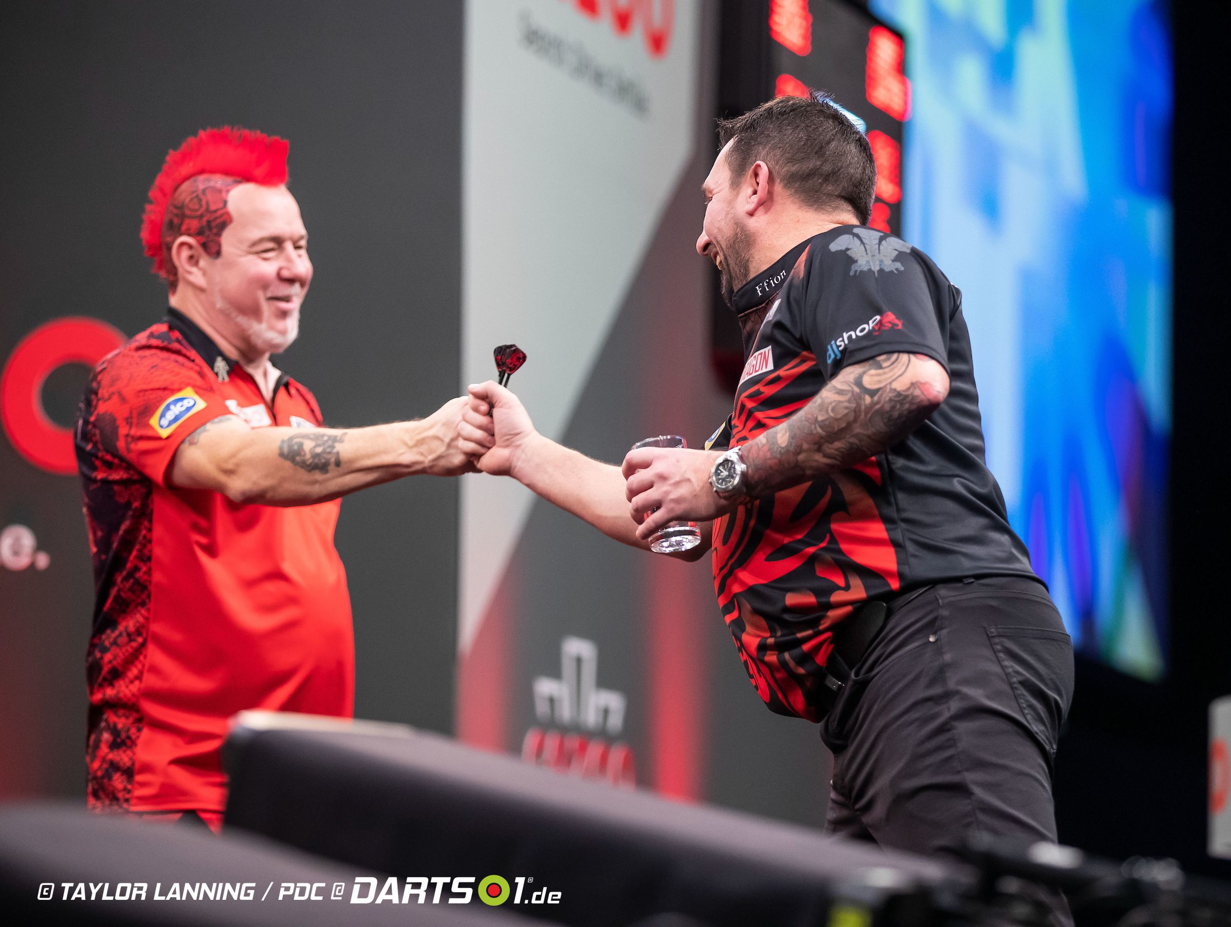 Als nächstes wurde den Zuschauern in Milton Keynes das Duell von Peter Wright und Jonny Clayton geboten. „Snakebite“ setzte mit einem 12-Darter den Startschuss. Clayton gelang im zweiten Leg ein noch besserer 11-Darter, wobei er auch ein 100er-Finish zeigte. Kurze Zeit später unterliefen Wright die ersten beiden Fehlwürfe auf Doppel, sodass sich Clayton per 12-Darter das erste Break sicherte. Wright konterte sofort mit einem blitzsauberen 72er-Checkout und nahm dank eines 14-Darters zudem eine knappe Führung mit in die Pause. Zurück auf der Bühne glänzte der Weltranglistenzweite mit einem 124er-Highfinish auf der doppelten 11. Den Rückstand ließ sich Clayton nicht lange gefallen. Durch einen 14- und einen 15-Darter sorgte der Waliser zügig wieder für Parität. Im neunten Leg warf Clayton gleich sechs Darts am äußeren Ring des Boards vorbei. Vom verpassten Break ließ sich „The Ferret“ zunächst nicht aus dem Konzept bringen, im nächsten Leg verteidigte er seinen eigenen Anwurf. Es ging folglich mit einem 5:5 in die zweite Unterbrechung. Zurück auf der Bühne übernahm Wright wiederum die Führung, ehe er zwei Patzer des Konkurrenten mit einem Break bestrafte. Das 13. Leg der Partie entschied der ehemalige Weltmeister ebenfalls für sich, sodass er den Sieg bereits in Reichweite hatte. Durch ein 121er-Checkout auf dem Bullseye verpasste Wright seinem Gegner kurz darauf den nächsten Nackenschlag, ein einziges Leg trennte den Schotten damit nur noch vom Weiterkommen. Mit einem 12-Darter produzierte Clayton zwar das direkte Rebreak, es sollte jedoch sein letztes Erfolgserlebnis bei diesem Turnier bleiben. Bereits ein Leg später machte Wright mit einem eigenen 12-Darter den Sack zu, er setzte sich letzten Endes mit 10:6 durch.