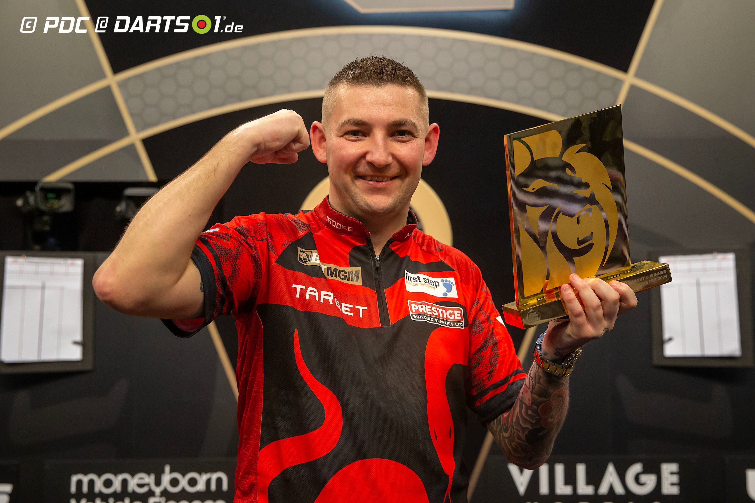 Nathan Aspinall begann das Finale, ging 1:0 in Front, bevor er den Vorsprung mit Break auf 2:0 auszubauen vermochte. Rob Cross kam zunächst gar nicht in Schwung, sodass Aspinall im dritten Durchgang das Break fast mühelos bestätigte, 3:0. Den vierten Durchgang schien keiner von beiden herausnehmen zu können. Rob Cross verpasste das Bullseye nur um Millimeter, was ihn das 158er-Checkout kostete. Die verbliebenen 25 Punkte ließen sich auch mit sechs Pfeilen in der Hand partout nicht mehr eliminieren. Auf der anderen Seite verwehrte das Bullseye Nathan Aspinall das 167er- Checkout. Da er aber mit effektiveren Schritten gen Ziellinie marschiert war, hatte er eine Aufnahme mehr zur Verfügung, um 25 Restpunkte auszuradieren. Der siebte Breakdart saß schlussendlich im anvisierten Doppel, und damit baute „The Asp“ seine Führung auf 4:0 aus. Das möglicherweise größte Drama dieses Finales spielte sich für Rob Cross im fünften Durchgang ab, in den er mit sechs perfekten Darts eingestiegen war, dann aber wieder komplett ausstieg, wodurch er das hervorragend begonnene Leg doch noch abgab. 5:0. Natürlich hatte sein Gegner massiven Anteil an dieser Wendung genommen, denn Nathan Aspinall schnappte Cross das Leg mit High-Finish, 160 (T20, T20, D20) vor der Nase weg. Im sechsten Durchgang bäumte sich „Voltage“ nochmal mit großer Willenskraft auf, verhinderte den White-Wash und griff sich sein erstes Leg in diesem Finale, 1:5. Auch im siebten Durchgang vermochte es Rob Cross ein weiteres Mal alles hineinzuwerfen, belohnte sich selber mit einem respektablen 12-Darter und High-Finish, 121 (20, T17, Bullseye) zum 2:5. Doch Nathan Aspinall wollte diesmal den ganzen Weg wirklich konsequent bis zum Ende gehen. Wie oft hatte er an den letzten Premier League-Spieltagen eine komfortable Führung wieder aus der Hand gegeben? Das sollte ihm heute Abend nicht passieren. Mit einem entschlossenen 13-Darter versenkte er den ersten Matchdart in der Double-20 und konnte im Anschluss die herzliche Gratulation seines Gegners entgegennehmen.