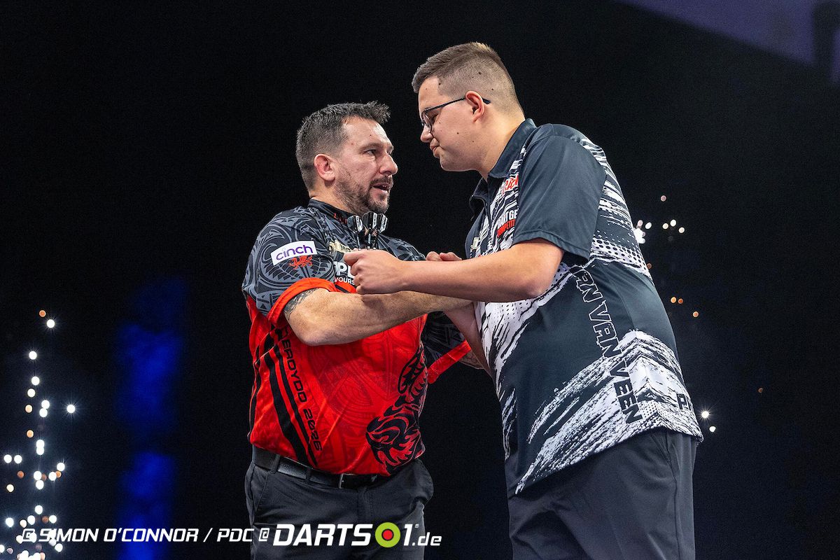 Im zweiten Viertelfinale traf Tabellenführer Jonny Clayton auf seinen ärgsten Verfolger Gian van Veen. Beide Spieler lieferten sich zunächst ein enges Match, doch Clayton nutzte im weiteren Verlauf seine Chancen konsequenter. Besonders ein starkes 105er-Finish brachte den Waliser auf Kurs, ehe er sich schließlich mit 6:4 behauptete. Van Veen hielt lange dagegen und glänzte ebenfalls mit einem dreistelligen Checkout, konnte Claytons konstantes Spiel jedoch nicht dauerhaft kontern.