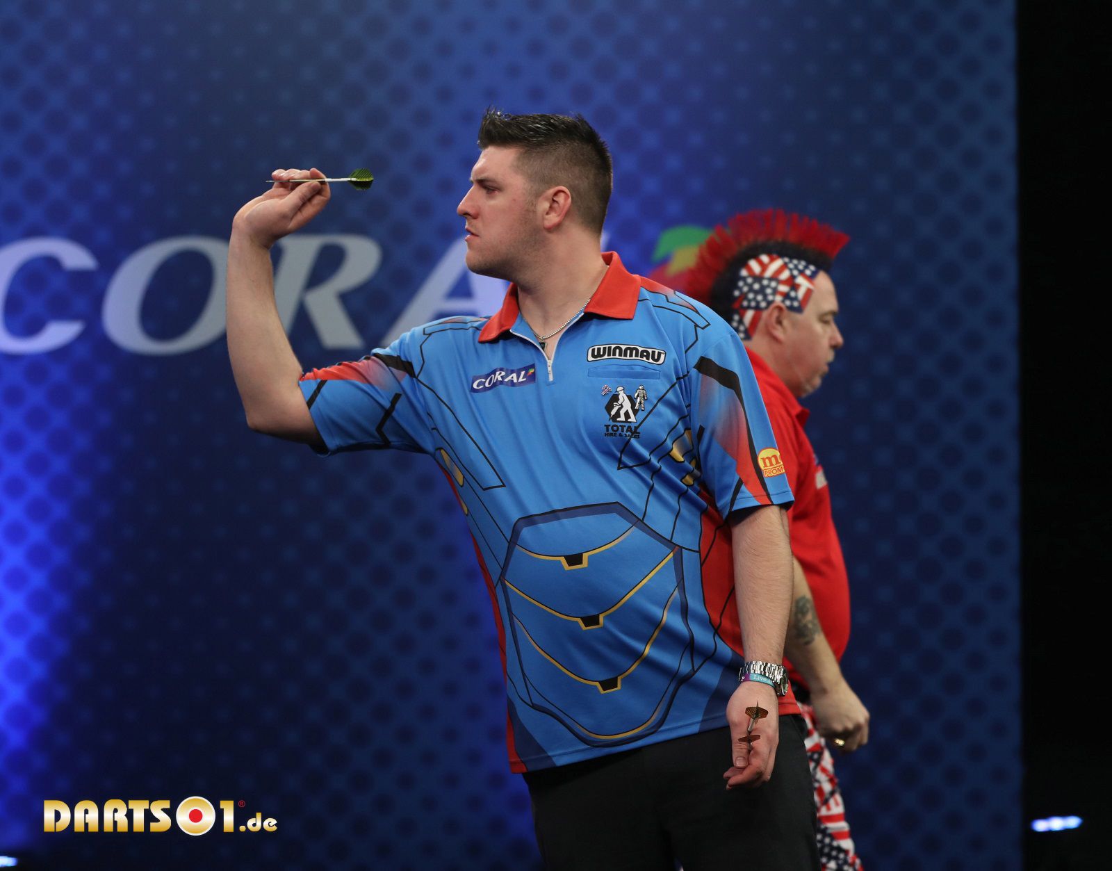 Vor genau einer Woche trafen sich Daryl Gurney und Peter Wright im Halbfinale des Players Championship Turnieres in Barnsley. Damals siegte Wright deutlich mit 6:1. Heute trafen sie sich erneut im Halbfinale, doch dieses Mal in einem Major Turnier. Hierbei ging Peter natürlich als klarer Favorit ins Spiel und startete auch direkt mit einem Break. Gurney warf daraufhin vier perfekte Darts, fand die perfekte Antwort. Dies wollte „Snakebite“ nicht auf sich sitzen lassen, warf seinerseits vier perfekte Darts und setzte sich bis auf 4:1 ab. Dabei checkte er sogar nochmal 144 Punkte, nachdem Gurney zuvor ein 112’er Finish verpasste. Peter tat seinem Gegner mit fast jeder Aktion weh, denn Daryl spielte alles andere als schlecht. Er zeigte eine gute Leistung, aber es fehlte einfach ein Quäntchen um Peter ernsthaft zu gefährden. So schaffte er in dieser Phase immer wieder Breaks, doch konnte diese nicht bestätigen und so konnte er nicht wirklich verkürzen. Wright setzte sich dadurch mit zunehmender Dauer immer weiter ab und brachte sich nach einem verpassten 143’er Finish von „Super Chin“ bis auf 9:3 in Führung. Spätestens damit war die Partie entschieden. Gurney wurde danach etwas lockerer und holte sich nochmal das eine oder andere Leg. Doch am Ende sollte er seinem Gegner einfach deutlich unterlegen sein und so siegte Wright verdient mit 11:5 und zog zum dritten Mal in Folge ins UK Open-Finale ein.