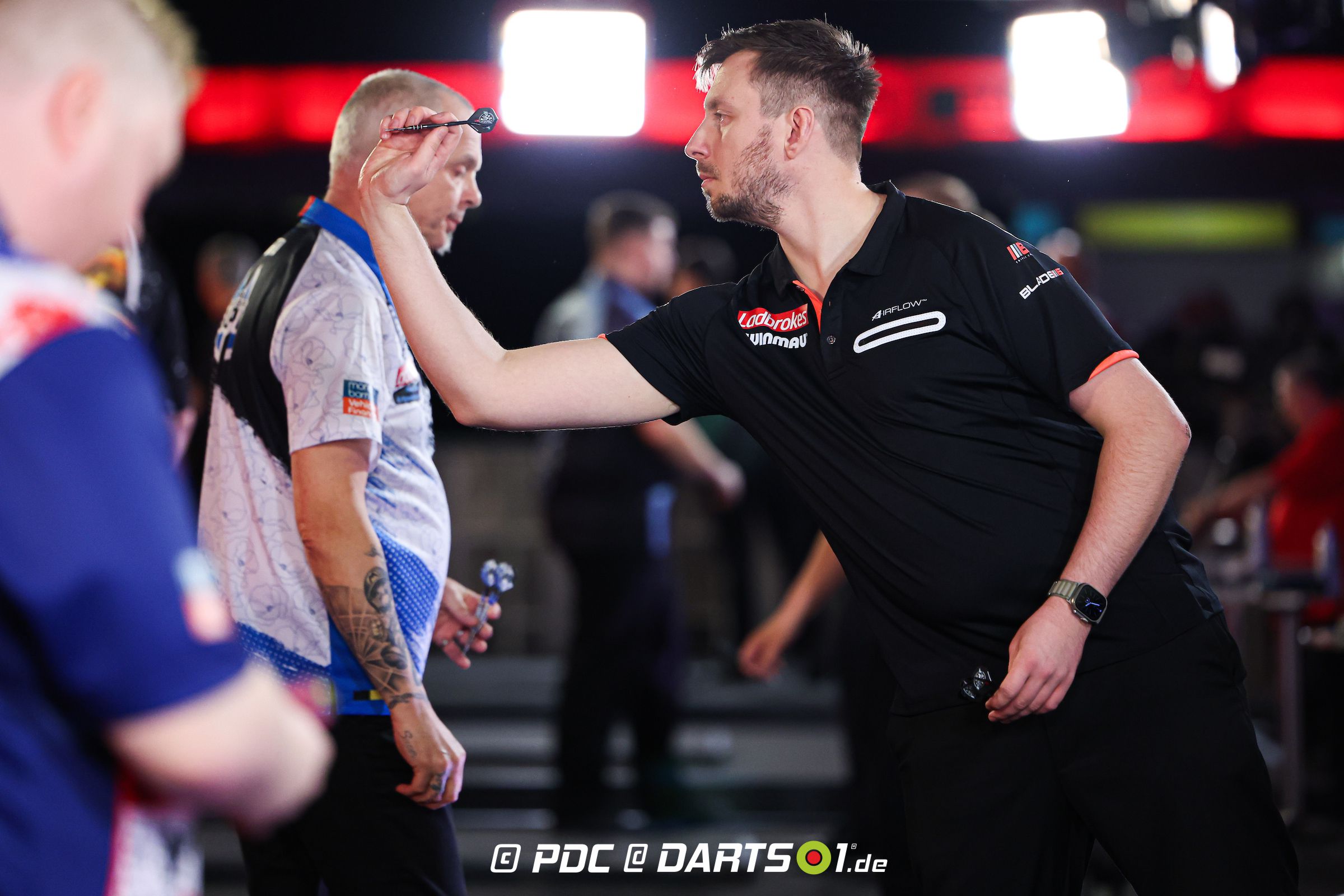 Den Kampf der beiden Engländer, Brett Claydon gegen Thomas Lovely, entschied Claydon mit 6:4 für sich. Im Anschluss sah man den einzigen Dänen im Feld, Benjamin Drue Reus („The Flying Star“) gegen einen von vielen Niederländern, den 19-jährigen Bradly Roes. 2023 konnte der 25-jährige Benjamin Drue Reus zusammen mit Vladimir Andersen beim Word Cup of Darts auf sich aufmerksam machen, heute konnte er im Alleingang mit einem 6:4 Sieg über Bradley Roes die Aufmerksamkeit auf sich ziehen.