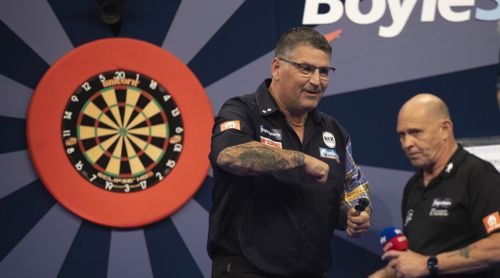 Ganze 48 Partien absolvierten James Wade und Mervyn King bereits gegeneinander, wobei der zweimalige Grand Prix-Sieger Wade 24 Partien für sich entschied und der frühere Finalist King 23 Male gewann (ein Unentschieden). Beim heutigen Aufeinandertreffen hatte King im allerersten Leg Pech, als er einen Bounceout aus dem Bullseye akzeptieren musste. Wade warf selbst fünffach an Doppelfeldern vorbei und brachte sein Anwurfleg doch noch nach Hause, konnte anschließend jedoch einen eigenen Breakdart nicht ausnutzen. King, der in dieser Situation 72 Zähler gelöscht hatte, holte sich kurz darauf dann selbst das erste Break und entschied den ersten Durchgang dank des darauffolgenden 14-Darters mit 3:1 für sich.