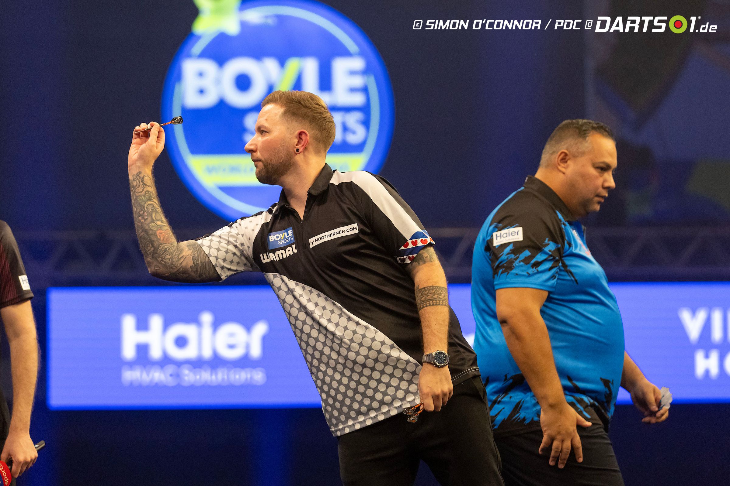 Luke Humphries und Nathan Aspinall lieferten sich ein hochklassiges Match. Der Weltranglistenerste entschied beide Sätze für sich, musste dabei aber hart arbeiten. Aspinall gelang ein spektakuläres 170er-Finish, doch Humphries konterte mit einem 156er-Checkout und sicherte sich den ersten Satz knapp. Auch im zweiten Durchgang nutzte er seine Startdoppel besser und setzte sich letztlich mit 2:0 durch. Humphries trifft in der zweiten Runde auf Krzysztof Ratajski.