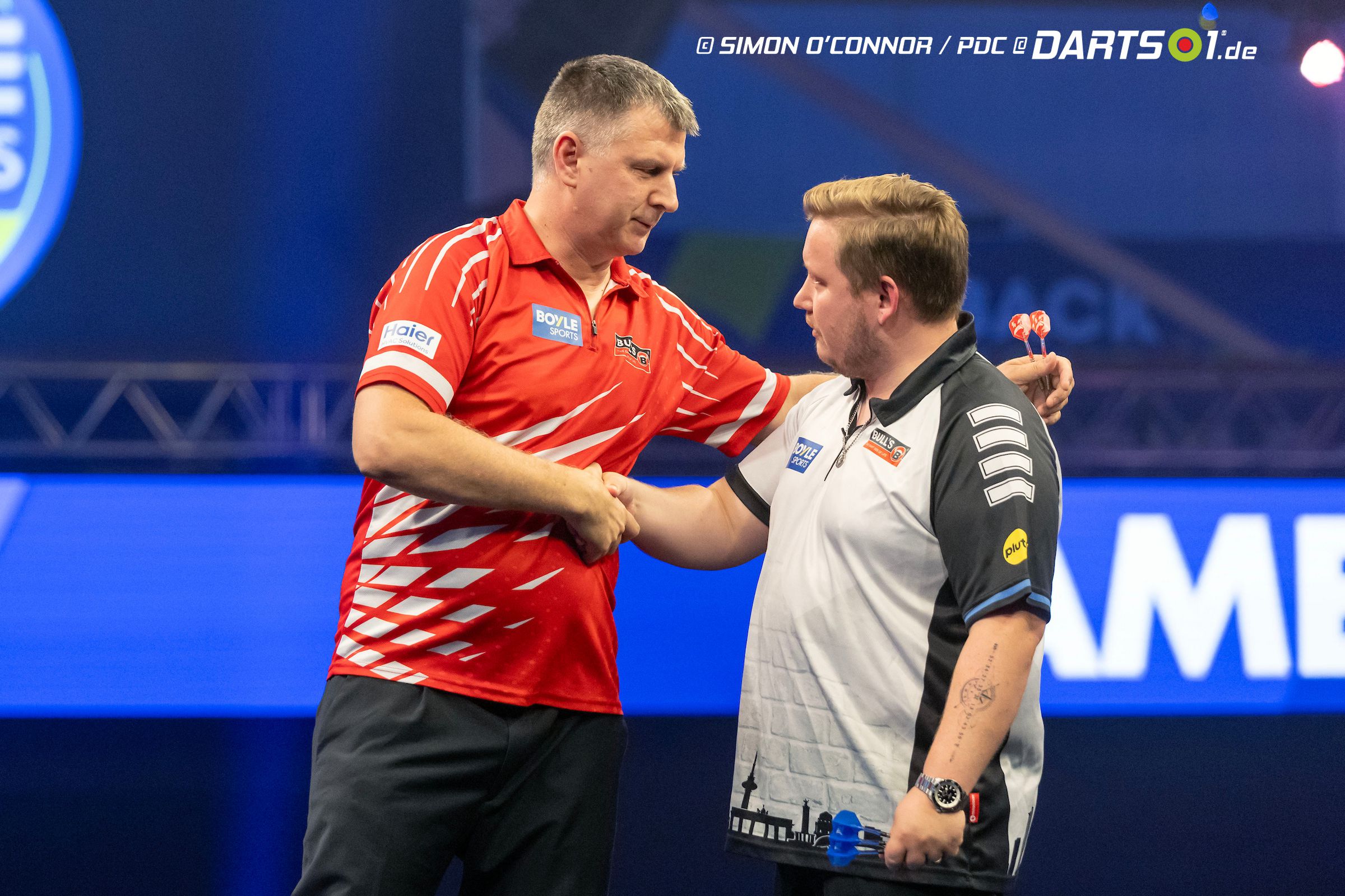 Zum Abschluss des Abends überzeugte Stephen Bunting mit einem klaren 2:0-Erfolg über Niko Springer. Der deutsche Debütant fand schwer ins Spiel, während Bunting von Beginn an konstant scorte und fünf 180er warf. Der Engländer sicherte sich beide Sätze ohne größere Probleme und zeigte mit Finishes von 116 und 130 Punkten seine Klasse. Springer konnte zwar einzelne Legs offen gestalten, doch der Unterschied in der Doppelquote gab letztlich den Ausschlag.