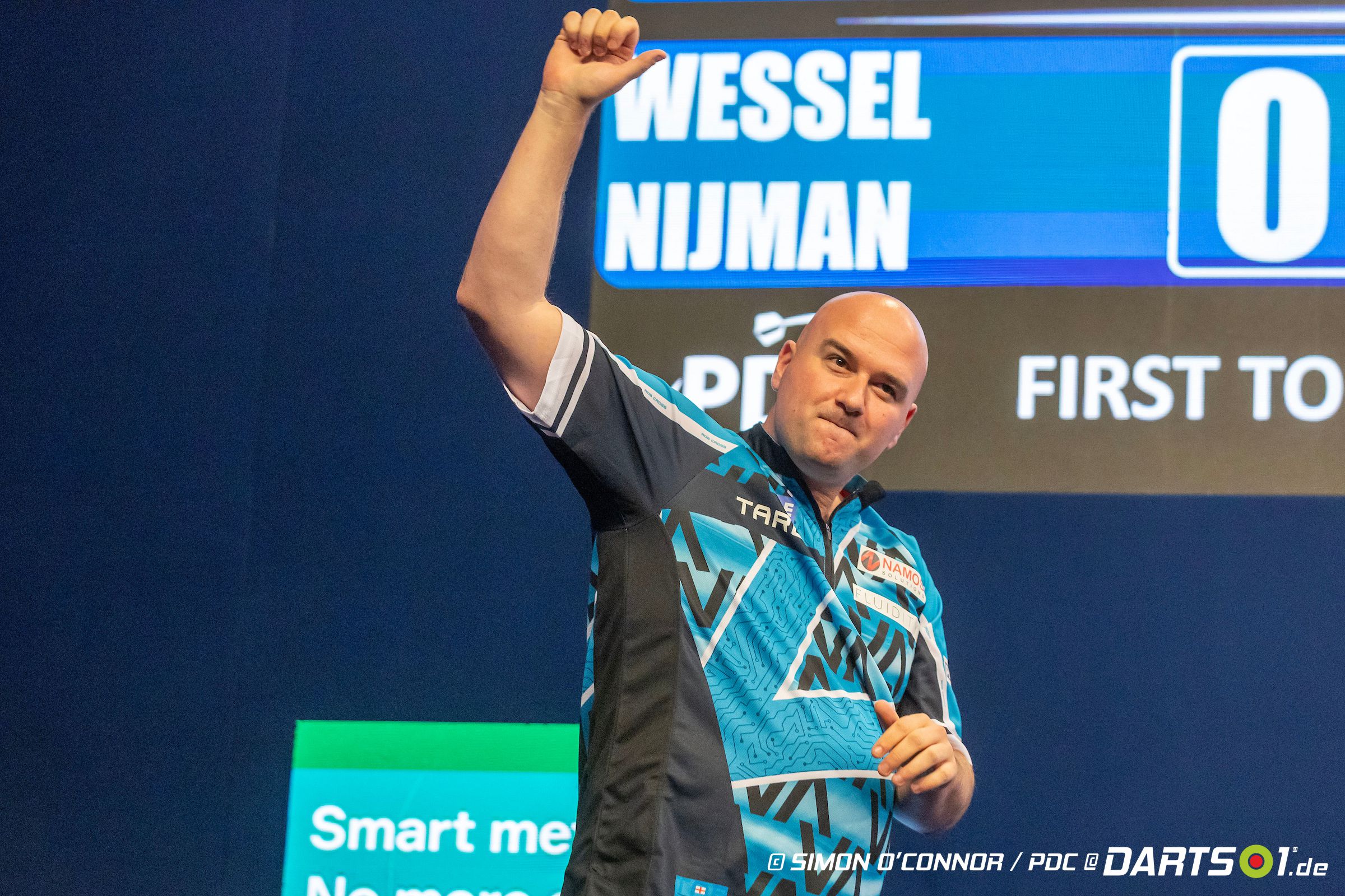 Zum Auftakt setzte sich Rob Cross knapp mit 2:1 gegen Debütant Wessel Nijman durch. Der junge Niederländer begann mutig und hatte im Entscheidungsleg sogar einen Matchdart auf das Bullseye. Cross blieb jedoch ruhig und nutzte seine Chancen auf den Doppeln deutlich konsequenter. Der Weltmeister von 2018 verwandelte acht seiner 16 Versuche auf den äußeren Ring und zog damit in Runde zwei ein.