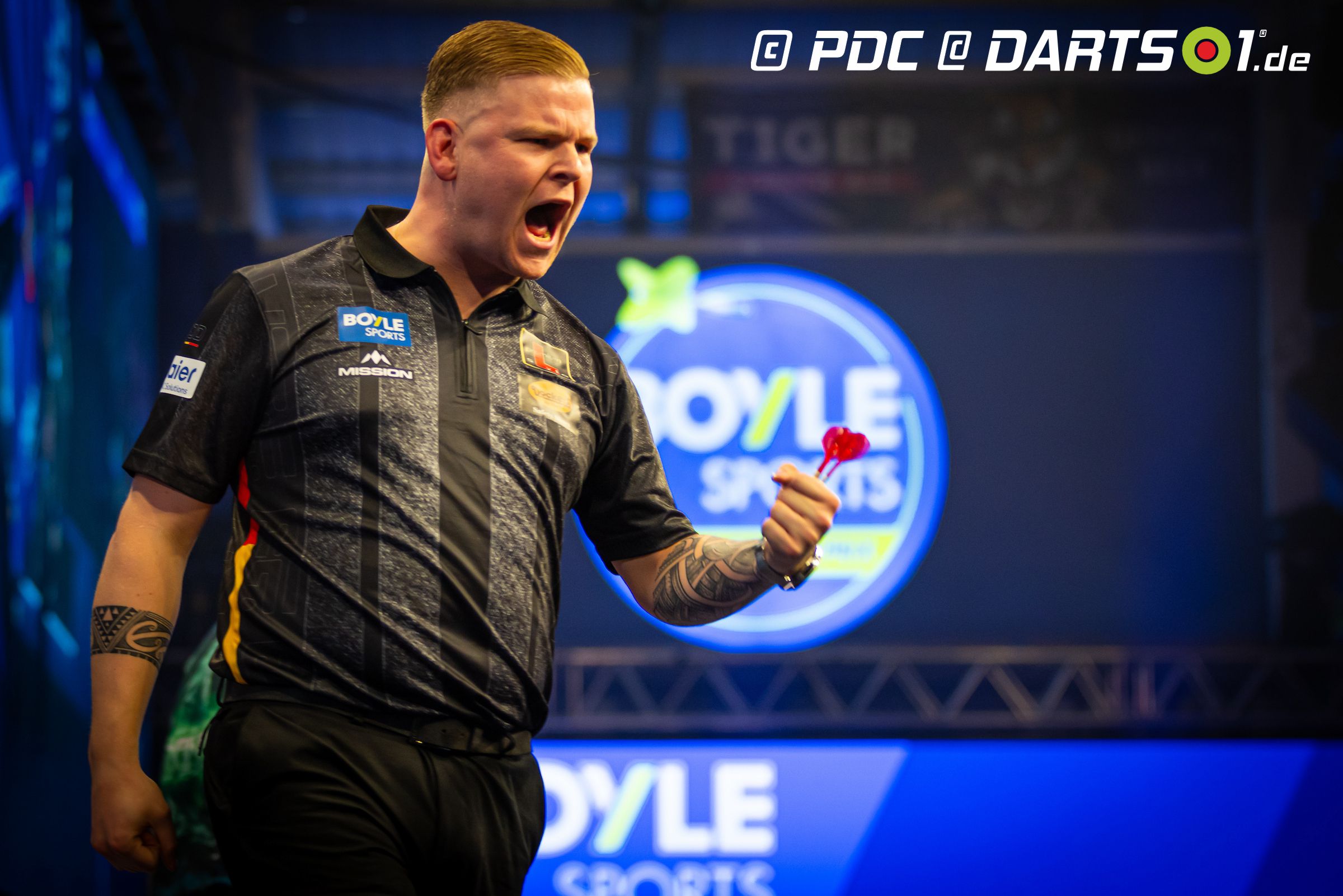 Im entscheidenden Leg des dritten Satzes vergab er zunächst mehrere Startdarts, ehe zwei perfekte Aufnahmen mit jeweils 180 Punkten die Wende brachten. Mit einem anschließenden 90er-Checkout machte „Woody“ seinen ersten Einzug in die zweite Runde des Turniers perfekt.