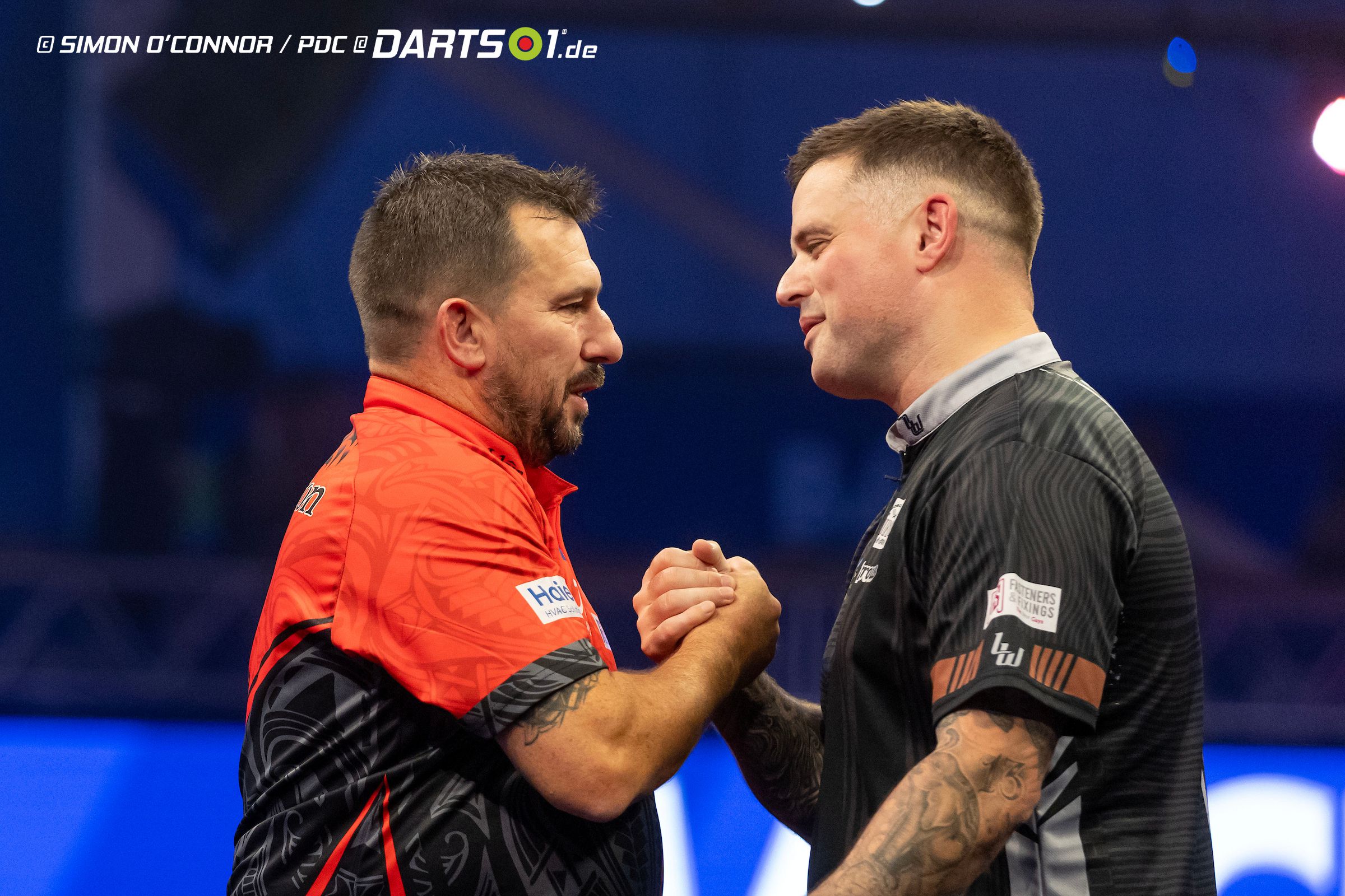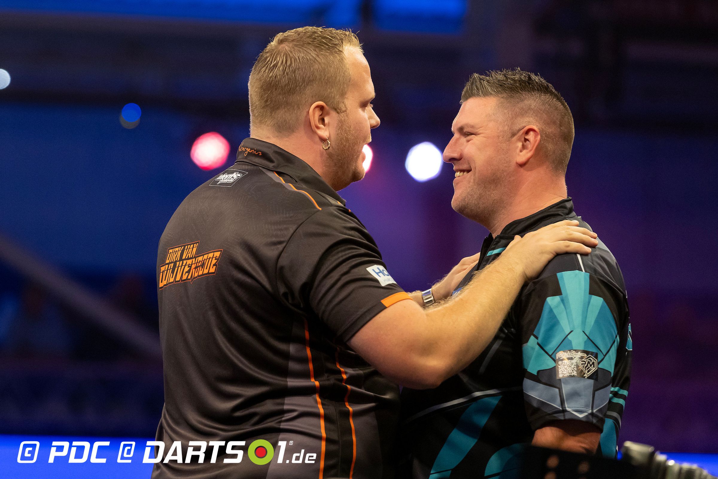 Dirk van Duijvenbode startete furios und gewann die ersten acht Legs der Partie. Daryl Gurney fand kaum ins Spiel, erst im dritten Satz leistete der Nordire etwas Widerstand. Doch van Duijvenbode blieb konzentriert und beendete das Match mit einem sehenswerten 158er-Checkout.