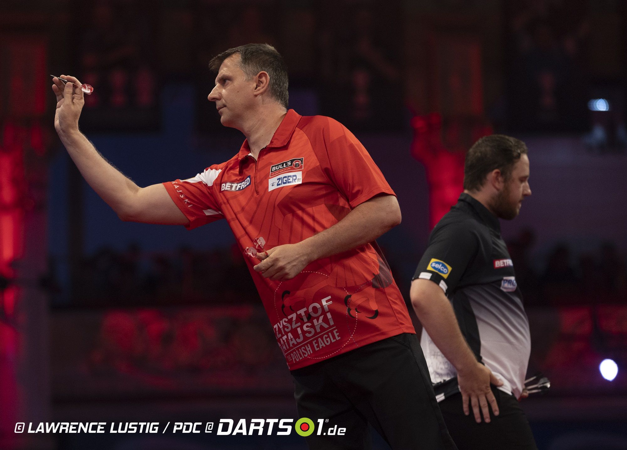 Durch einen 14-Darter ging Rydz dazwischen, doch Ratajski löschte kurz nach der ersten Pause 116 Punkte und stellte mit dem 4:2 den alten Abstand wieder her. Im siebten Leg profitierte der „Polish Eagle“ von zwei Patzern aufseiten des Engländers. Vollkommen problemlos baute Ratajski seinen Vorsprung anschließend weiter aus, er leistete sich danach allerdings selbst drei Fehlwürfe auf der Doppel-20. Trotz vier eigener Fehler brachte Rydz in dieser Situation seinen Anwurf durch, der Rückstand war mit 3:6 aber dennoch beträchtlich. Dies galt umso mehr, als Ratajski im zehnten Leg auf der Doppel-4 erfolgreich war.