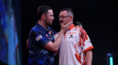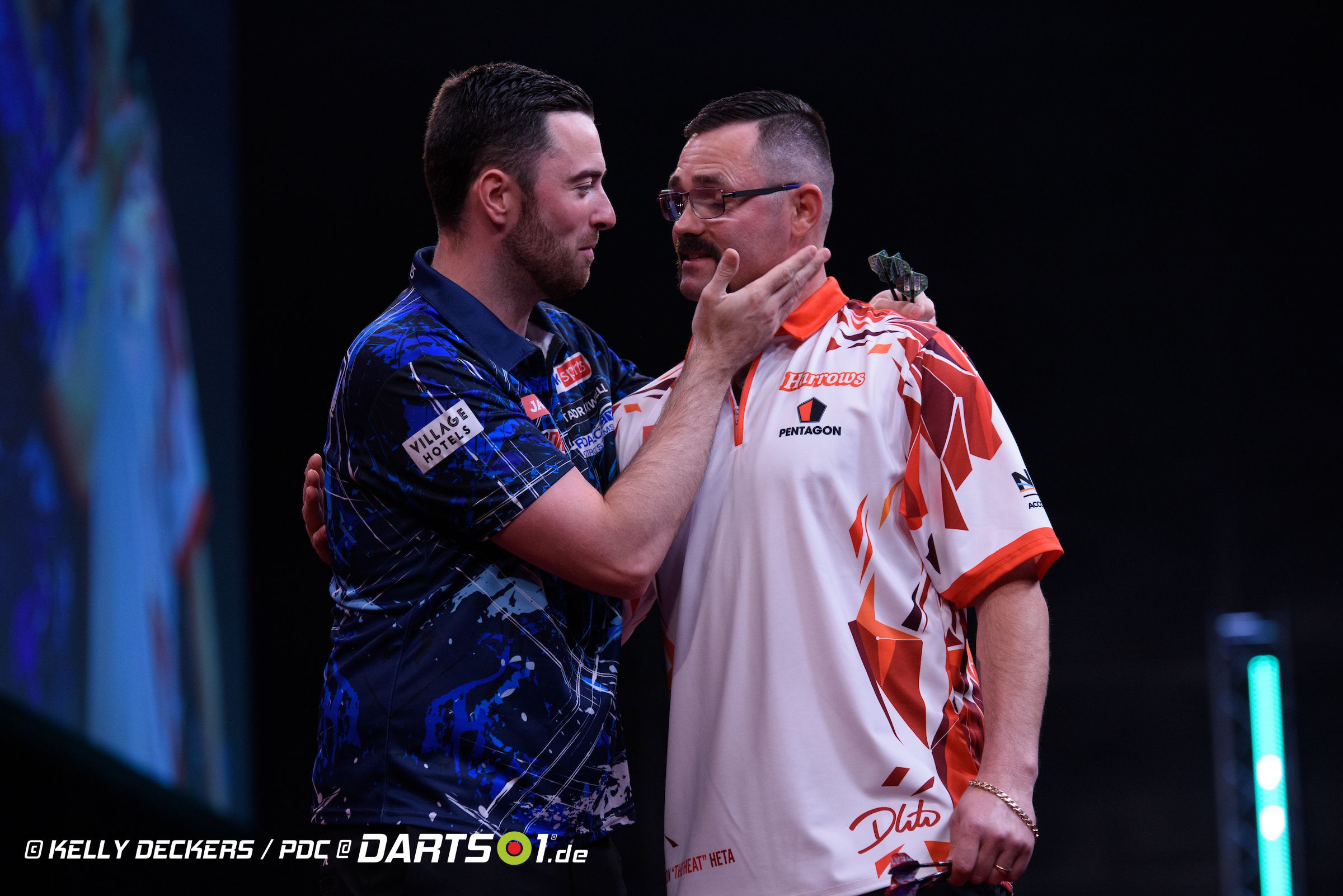 Der nächste Luke betrat die Bühne, es war der Weltranglistenerste, Luke Humphries, der im Achtelfinale gegen Damon Heta antrat. Auch wenn die Reminiszenz schmerzt, hier nochmal die Erinnerung, Damon Heta hatte Gabriel Clemens nach engem Kopf-an-Kopf-Rennen aus dem Turnier geworfen, während Luke Humphries Haupai Puha nach Hause geschickt hat. Zuletzt standen sich die heutigen Gegner im Finale des New Zealand Masters gegenüber, da hatte Luke Humphries den Australier fest im Griff. Doch heute Abend gaben sie sich beide Saures. In den ersten zwei Durchgängen stahl jeder rigoros das begonnene Leg des anderen, Luke Humphries war derjenige mit dem ersten Anwurf gewesen, 1:1. In den nächsten vier Durchgängen hielt wiederum jeder sein eigenes Leg unangefochten, wobei Damon Heta jeweils lediglich 14 Würfe benötigte, während Luke Humphries nur im fünften Leg mit dem 13-Darter wirklich glänzen konnte, 3:3. 14 Pfeile brauchte auch Luke Humphries im siebten Durchgang, um seinen Anwurf zu halten, sowie im achten Leg, um das nächste Break einzufahren. In letztgenanntem Durchgang wäre ihm um ein Haar das 127er-Finish gelungen, aber auch wenn zunächst 25 Restpunkte stehen geblieben waren, das 5:3 war es allemal. Damon Heta war noch nicht geschlagen und konterte im neunten Leg unverzüglich mit dem Re-Break, 4:5. Und im zehnten Durchgang zog der Australier den 13-Darter, inklusive 133er-Vorbereitung, aus dem Ärmel und erzwang damit die Verlängerung, 5:5. Und natürlich war es der Decider, in dem Luke Humphries seinen weltmeisterlichen 10-Darter zutage förderte: 101 – 180 – 180 – 40. Das gehört halt auch zu einem großen Champion dazu, zu wissen, wann der beste Zeitpunkt für die beste Performance gekommen ist. 6:5, auch Luke Humphries stand im Viertelfinale.